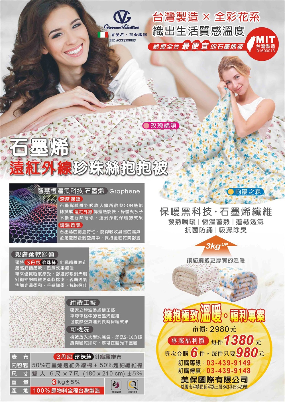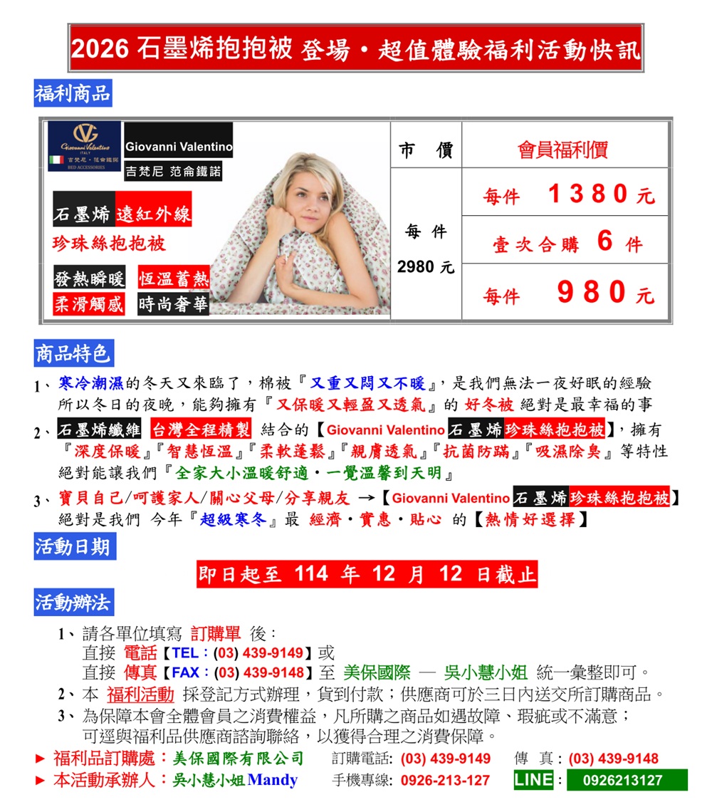 【福利專案】G.V石墨烯遠紅外線珍珠絲抱抱被(~12/12)