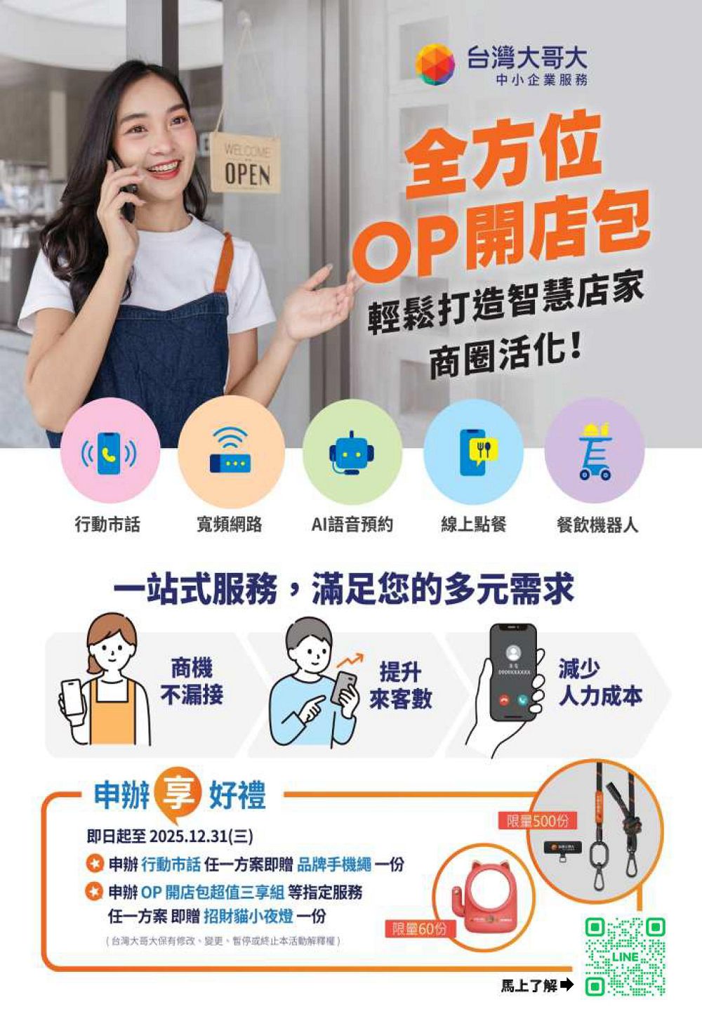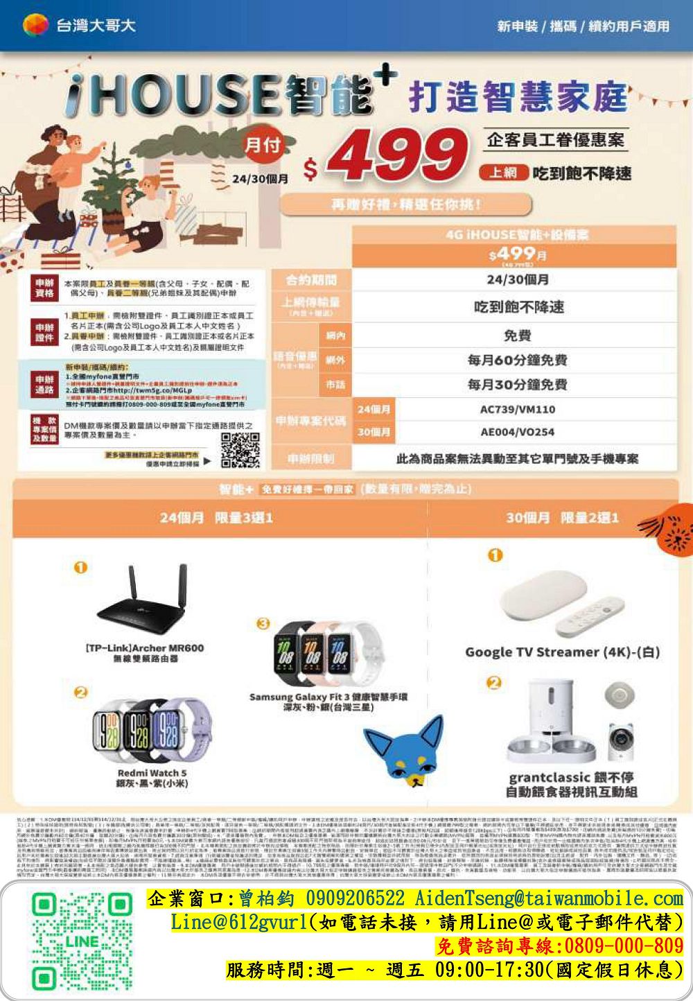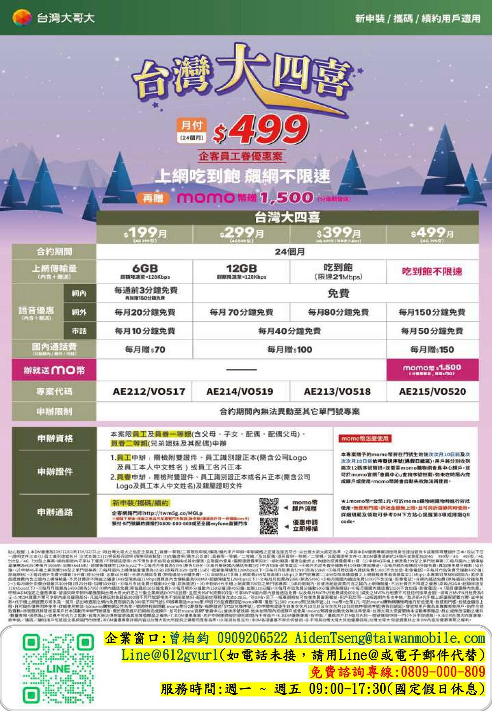 立即申辦-企客網路門市https://twm5g.co/zgC9 輸入統編 26883457 申辦相關問題可洽詢專屬企業窗口: 曾柏鈞 Aiden Tseng aidentseng@taiwanmobile.com LINE ID: @612gvurl 服務時間:週一∼週五 9:30~17:30 (國定假日休息)