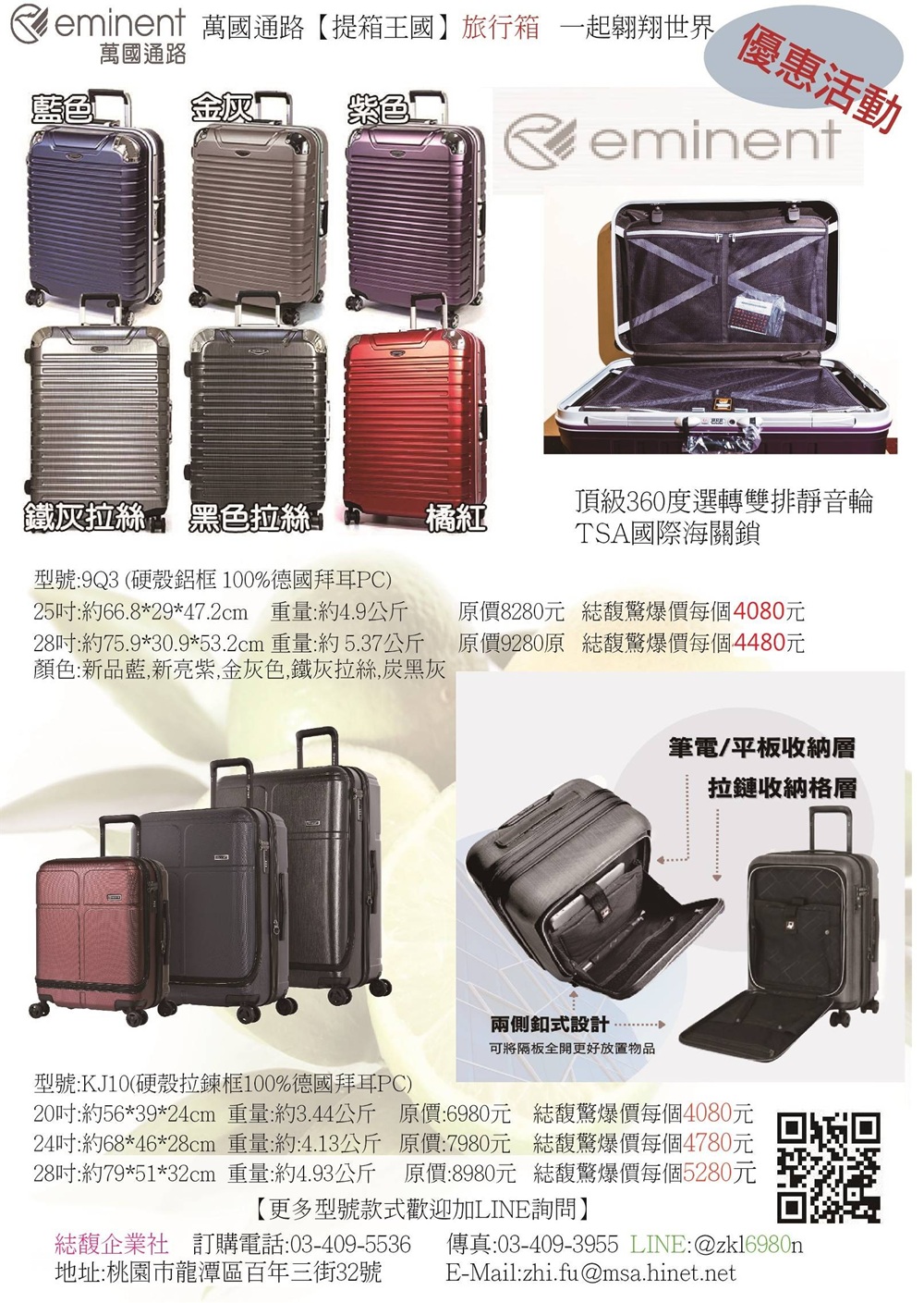 【福利專案】eminent萬國通路旅行箱(~2/10)